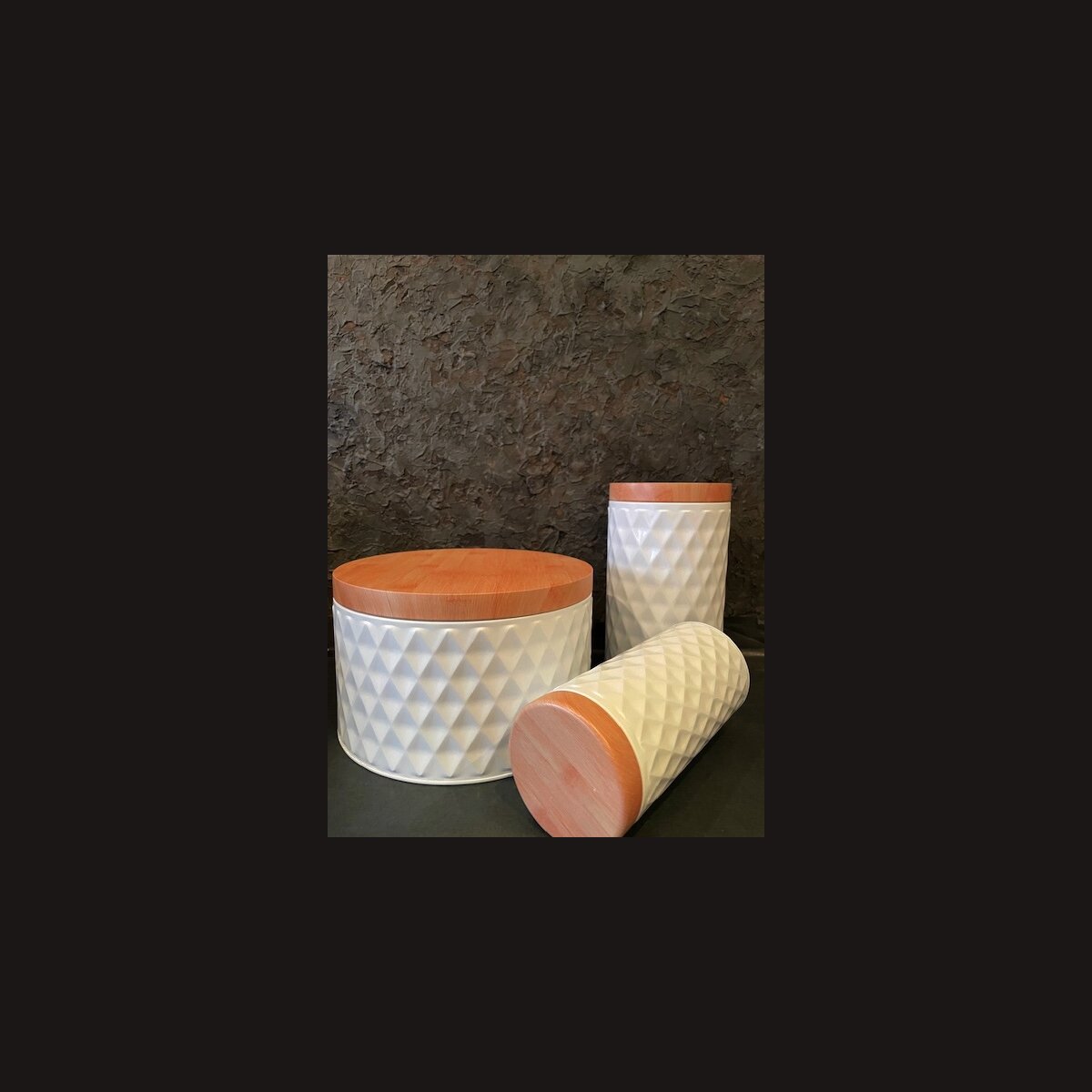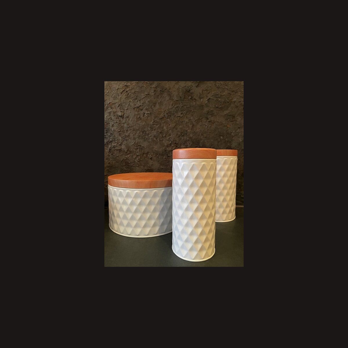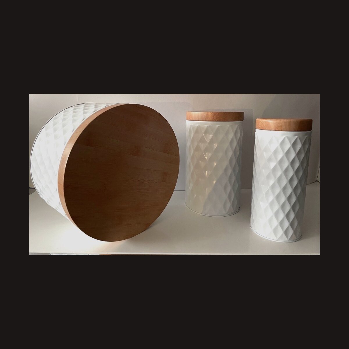 NEW KüchenLOOK WEISSES 3tlg. geprägtes edles Metall VorratsDosen Set